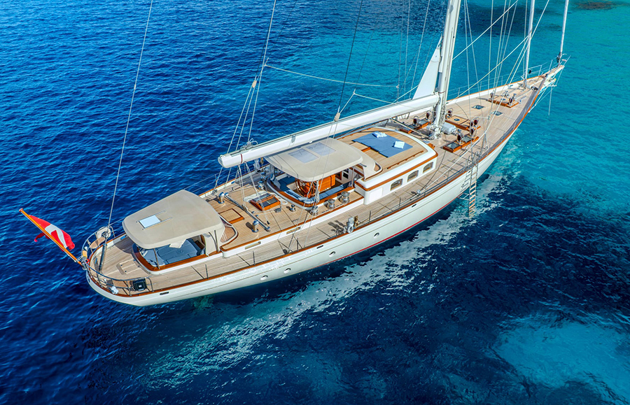 In 2020, FOFTEIN underwent a comprehensive refit via Huisfit, Royal Huisman’s elite refit division, transforming her into a pioneer of sustainable yachting. Her upgrades include hybrid propulsion (enabling quiet cruising and energy regeneration under sail) and state‑of‑the‑art lithium‑ion systems, making her ready for strict emissions and eco‑standards in world’s most demanding zones.