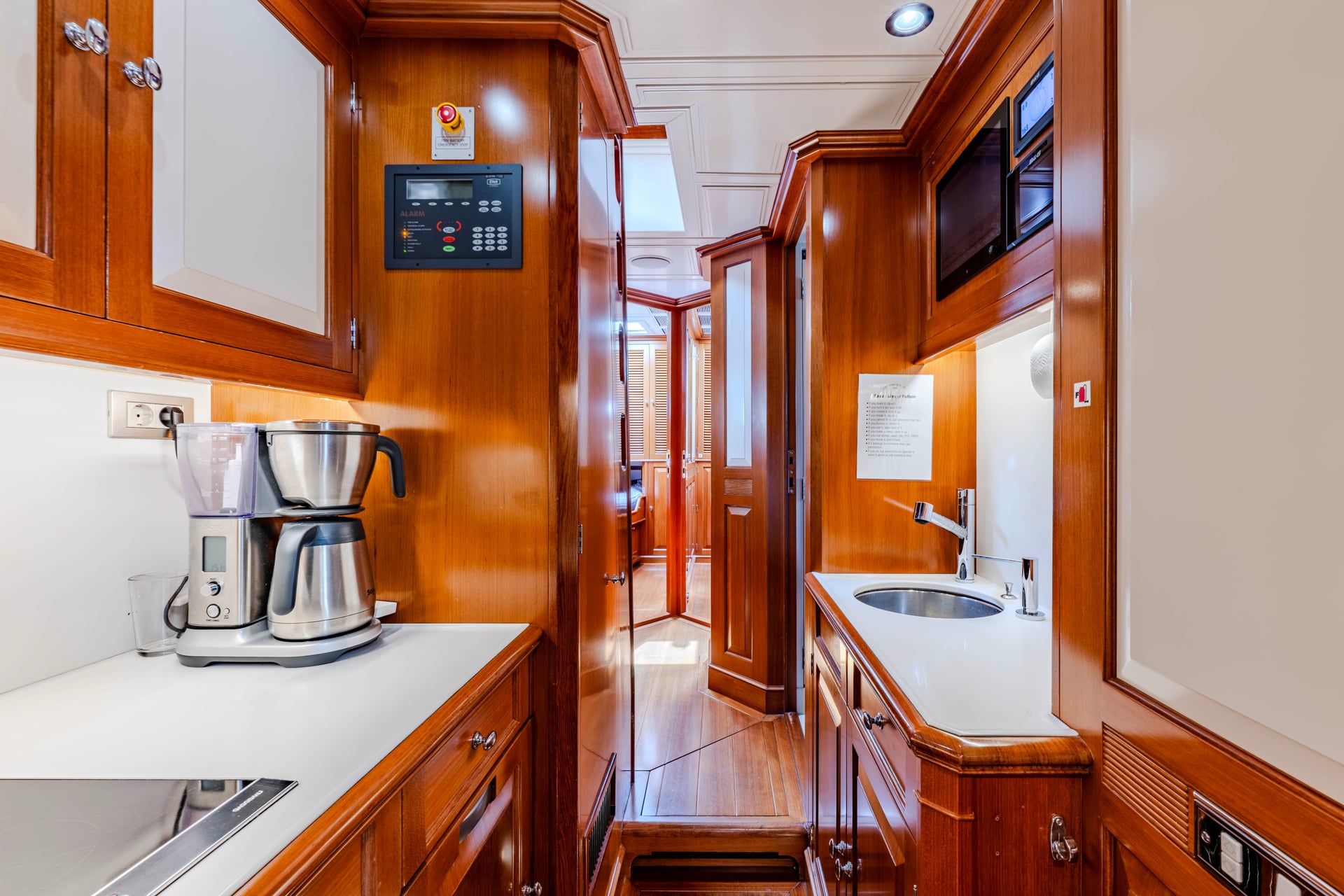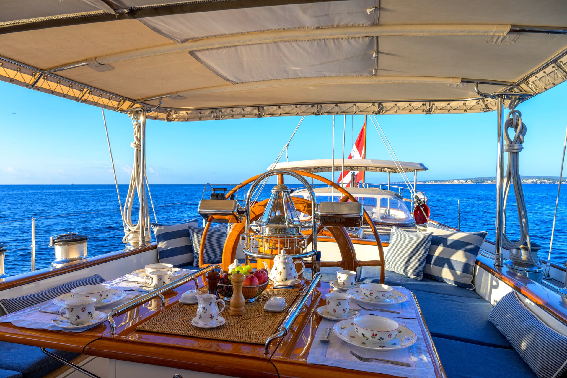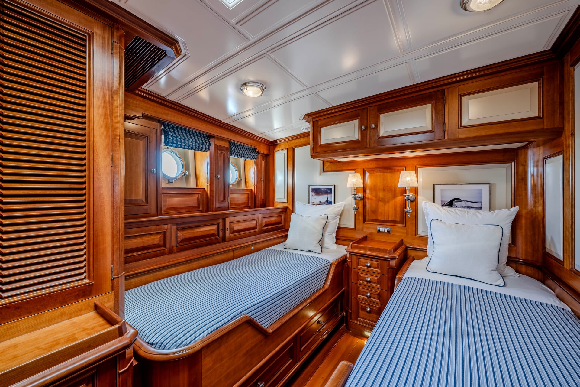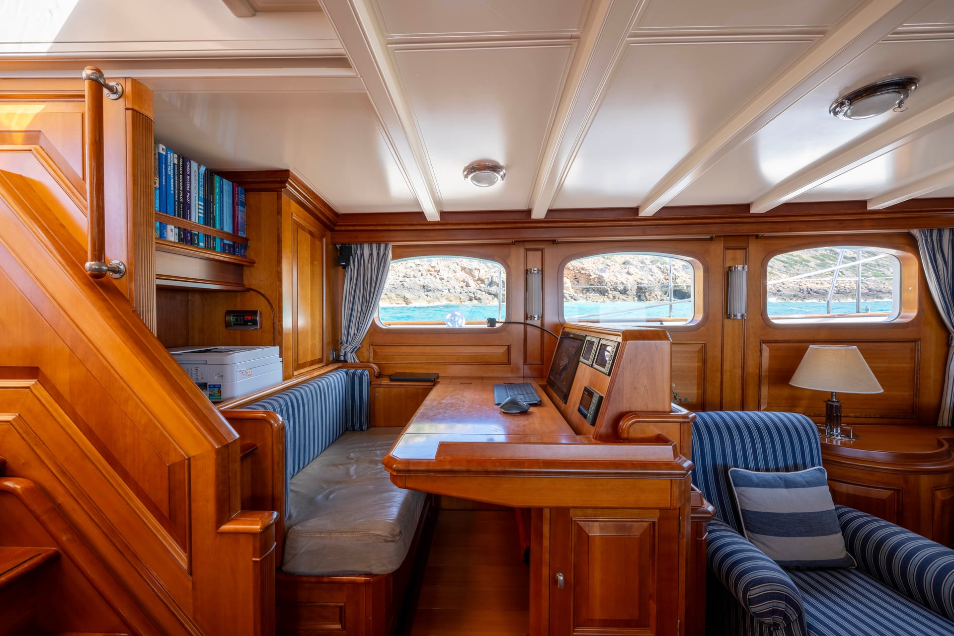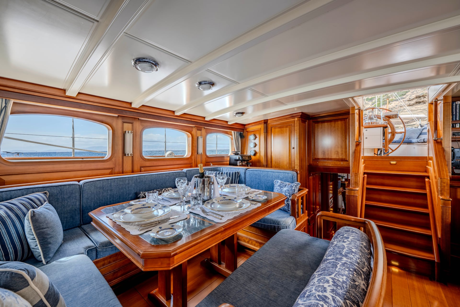 Commissioned by a passionate marine photographer, FOFTEIN was purpose-built for serious bluewater cruising, with proven global range including Arctic and Red Sea voyages. In 2020, she underwent a transformative hybrid propulsion and systems upgrade by Huisfit (Royal Huisman’s elite refit division), making her one of the first classic sailing yachts to cruise silently, regenerate energy under sail, and comply with the world’s most advanced environmental standards.